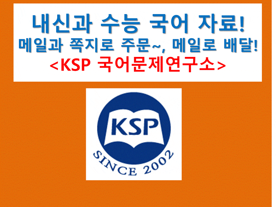 지금도 이 자료들은 <평촌 KSP국어학원>에서 수업을 하거나, 내신 대비 자료로 모두 사용하고 있습니다. 간혹 인간이 하는 일이니 오타가 있고 정답에 오류가 있을 수 있습니다.(이점은 너그럽게 좌 부시는 센스!^8^)