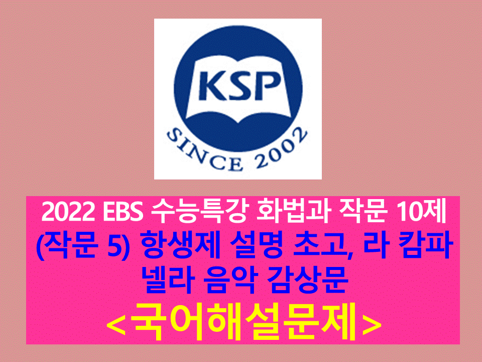 '작문 5(항생제 설명 초고, 라 캄파넬라 음악 감상문 초고)'-10문제(2022학년도 수능특강 기출, 변형) 문제를