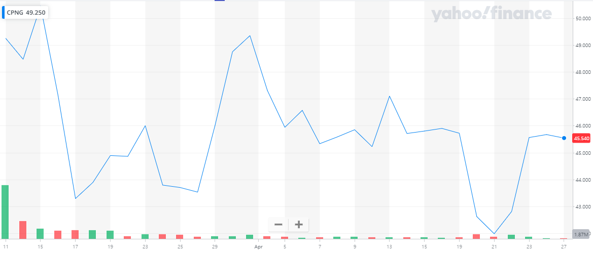 상장 이후 쿠팡의 주가 움직임. /야후파이낸스 캡처