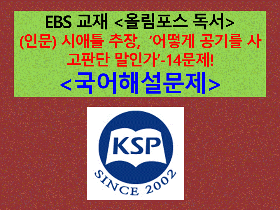 #KSP국어학원 #평촌국어학원 #안양국어학원 #EBS수능특강문학해설 #EBS수능완성문학독서자료 #EBS연계교재변형문제 #국어독학카페 #국어문학기출문제 #화법과작문문제 #언어와매체내신대비자료 #고등국어문제 #중등국어내신대비자료 #문법문제 #화법과작문문제 #문법이론정리 #화법과작문내용정리 #고전소설문제와해설 #현대소설문제와해설 #현대시해설과문제 #수능기출해설과자료 #수능문학자료실 #학력평가자료 #모의고사기출문학해설 #모의고사문학변형문제 #모의고사기출변형문제 #2021학년도수능특강자료 #KSP국어문제연구소 #국어문제연구소 #2021학년도수특문학해설과문제 #2020년모의고사기출문학해설과변형문제판매 #2019년모의고사기출문학해설과변형문제판매 #2022학년도수능특강해설 #2022학년도수능특강변형문제 #2022학년도언어와매체변형문제 # 2022학년도수능특강화법과작문변형문제 #2022학년도수능완성지문해설과변형문제 #2021년9월고1,2,3학년모의고사 #수능평가원모의고사지문해설,변형문제 #EBS독해의원리변형문제