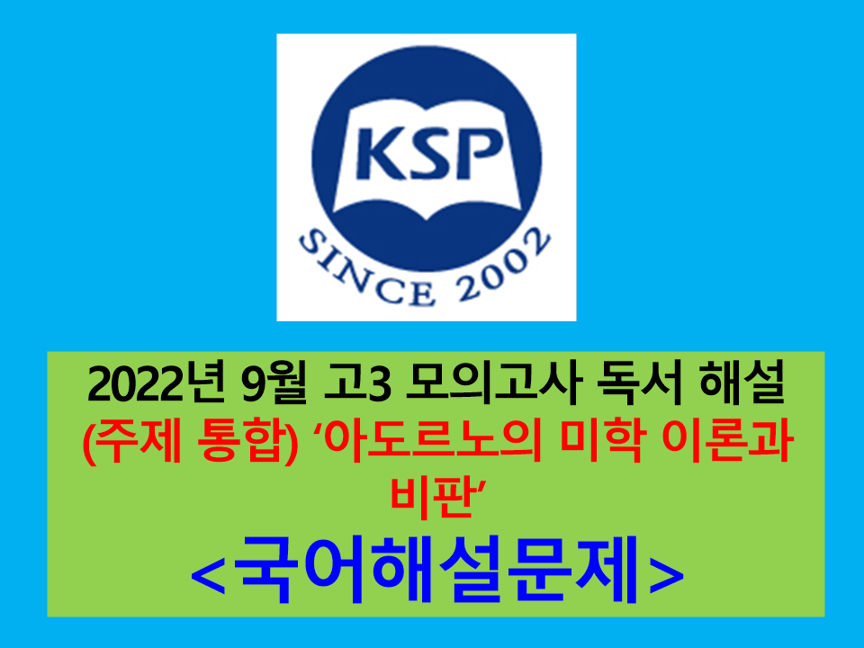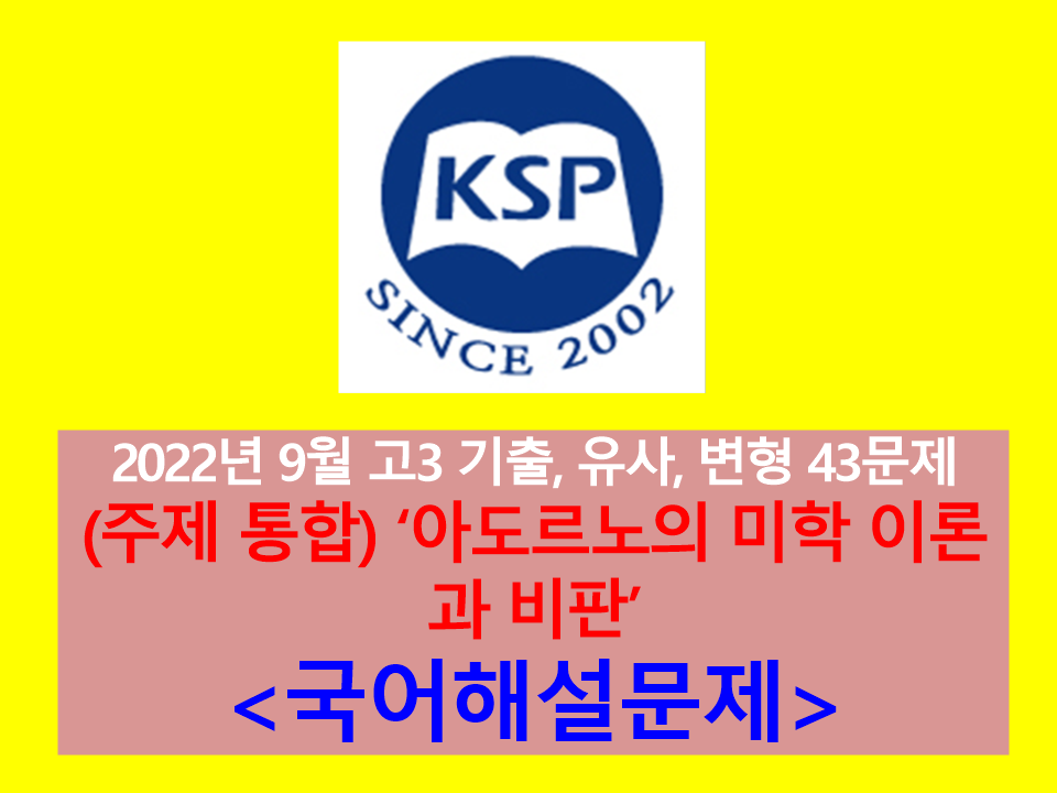 (주제 통합) '아도르노의 미학 이론과 비판'-지문 해설, 대비 기출, 유사, 변형 문제(2022년 9월 고3 평가원(2023학년도))~~